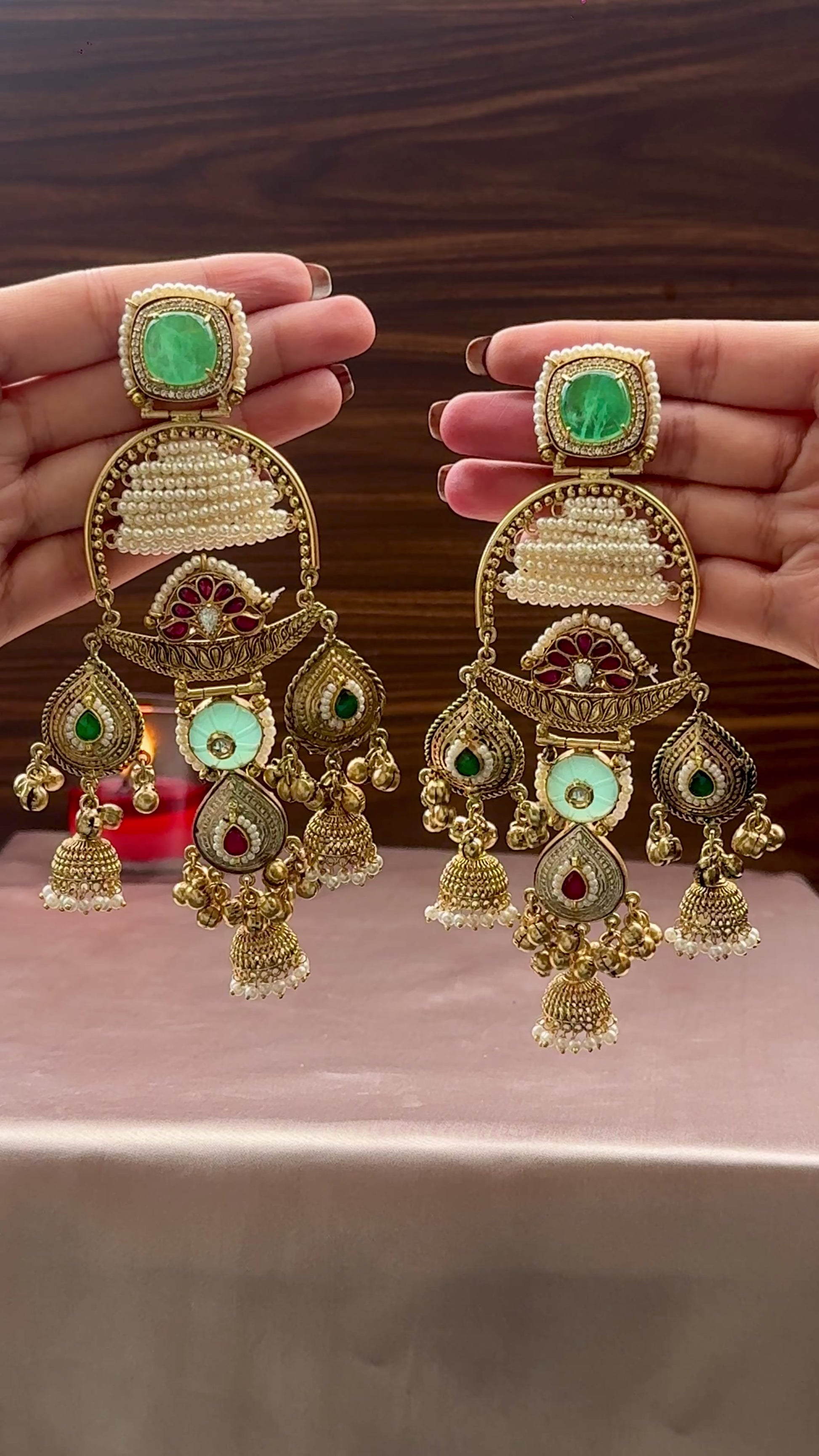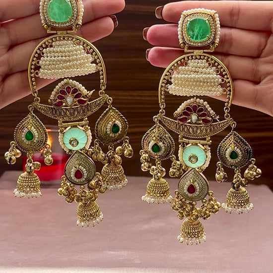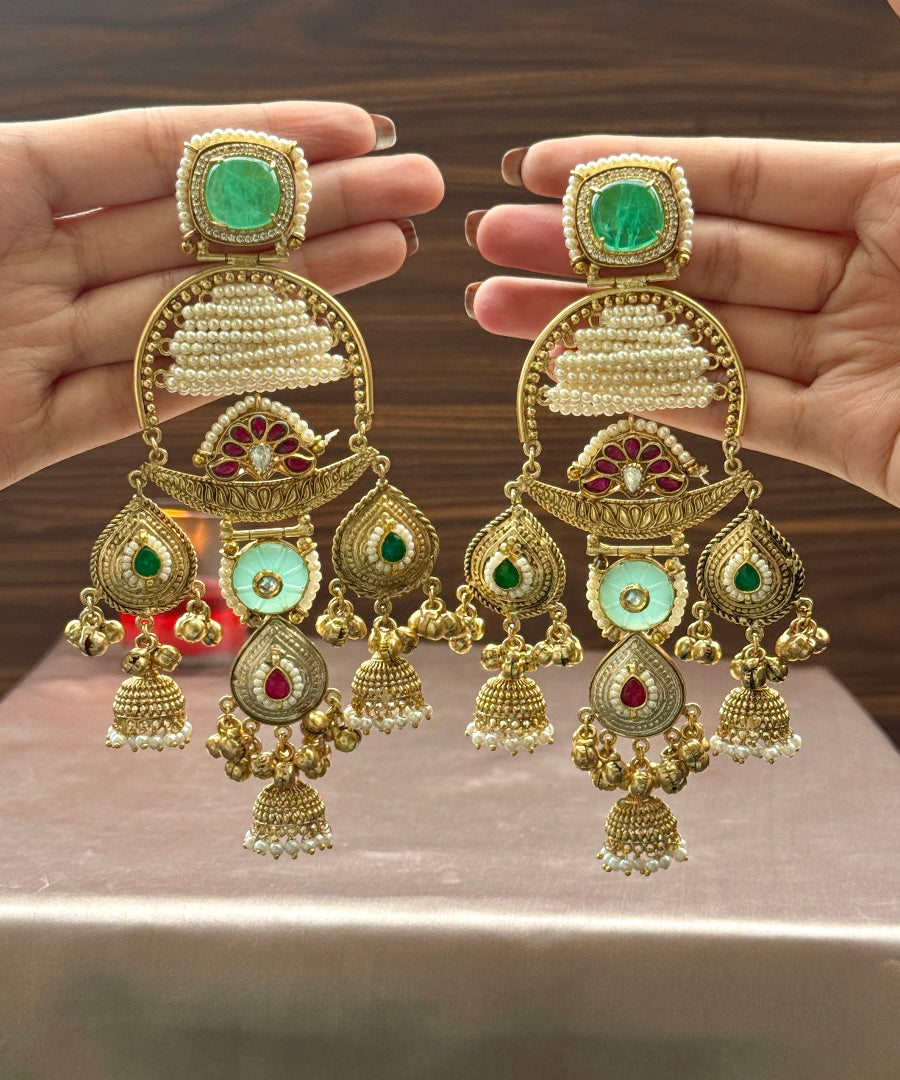 The ‘Awaaz-e-Junoon’ Earrings embody passion and fire, crafted to shimmer with bold elegance.