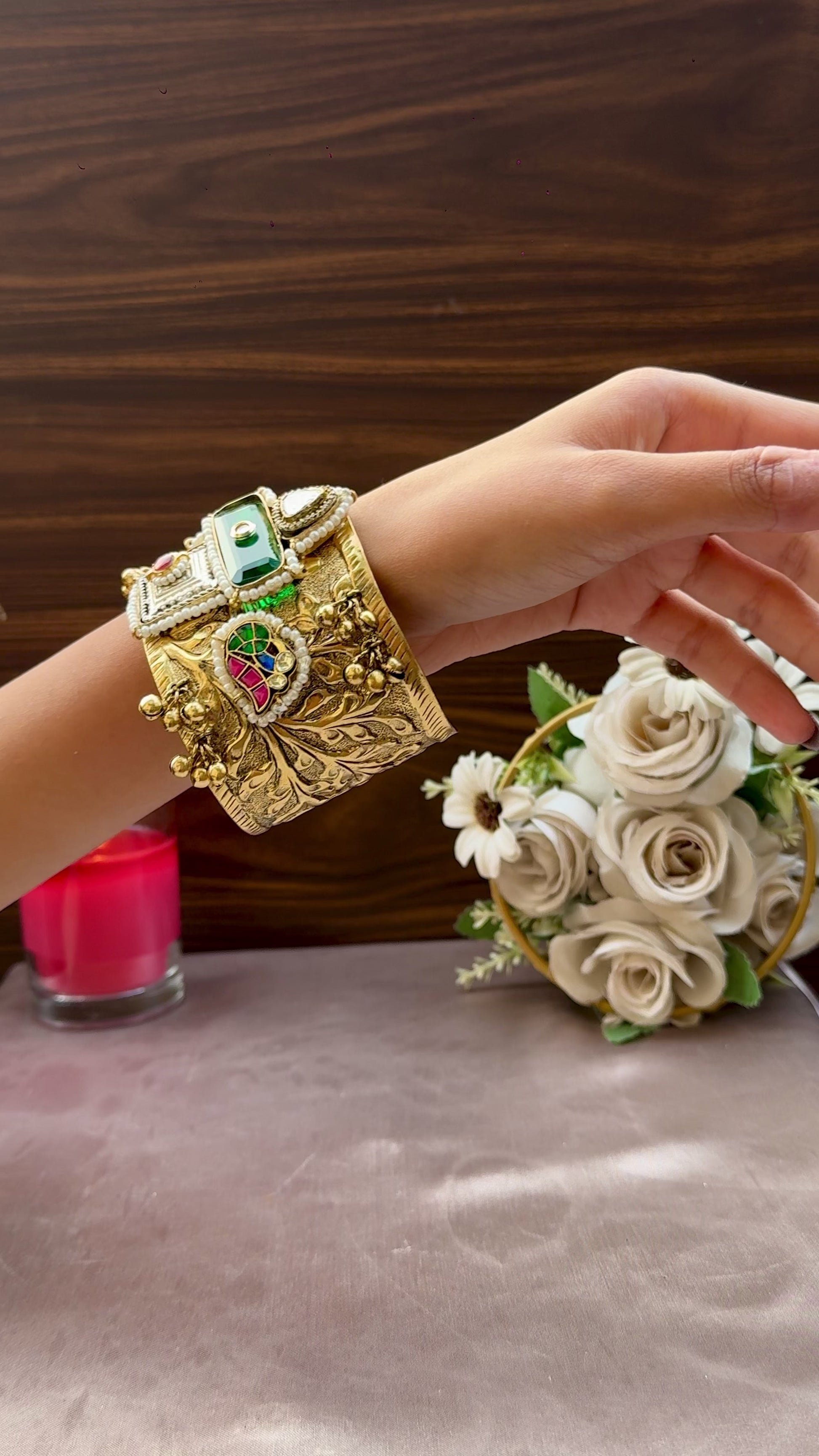 Inspired by the bloom of crimson flowers, this Bracelet radiates feminine grace and timeless charm. Its intricate detailing mirrors petals kissed by sunlight — perfect for those who love to wear elegance with a hint of fire.