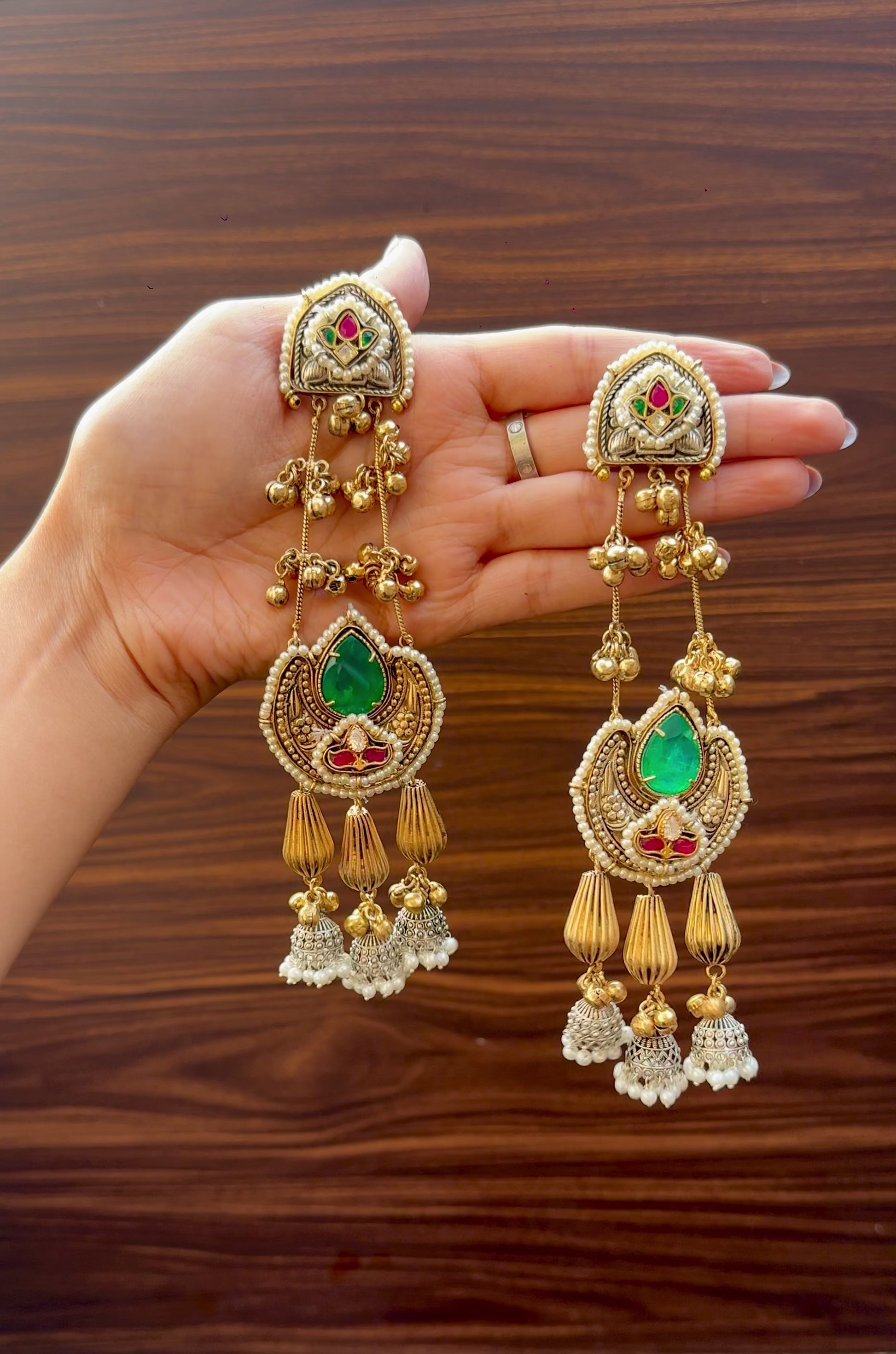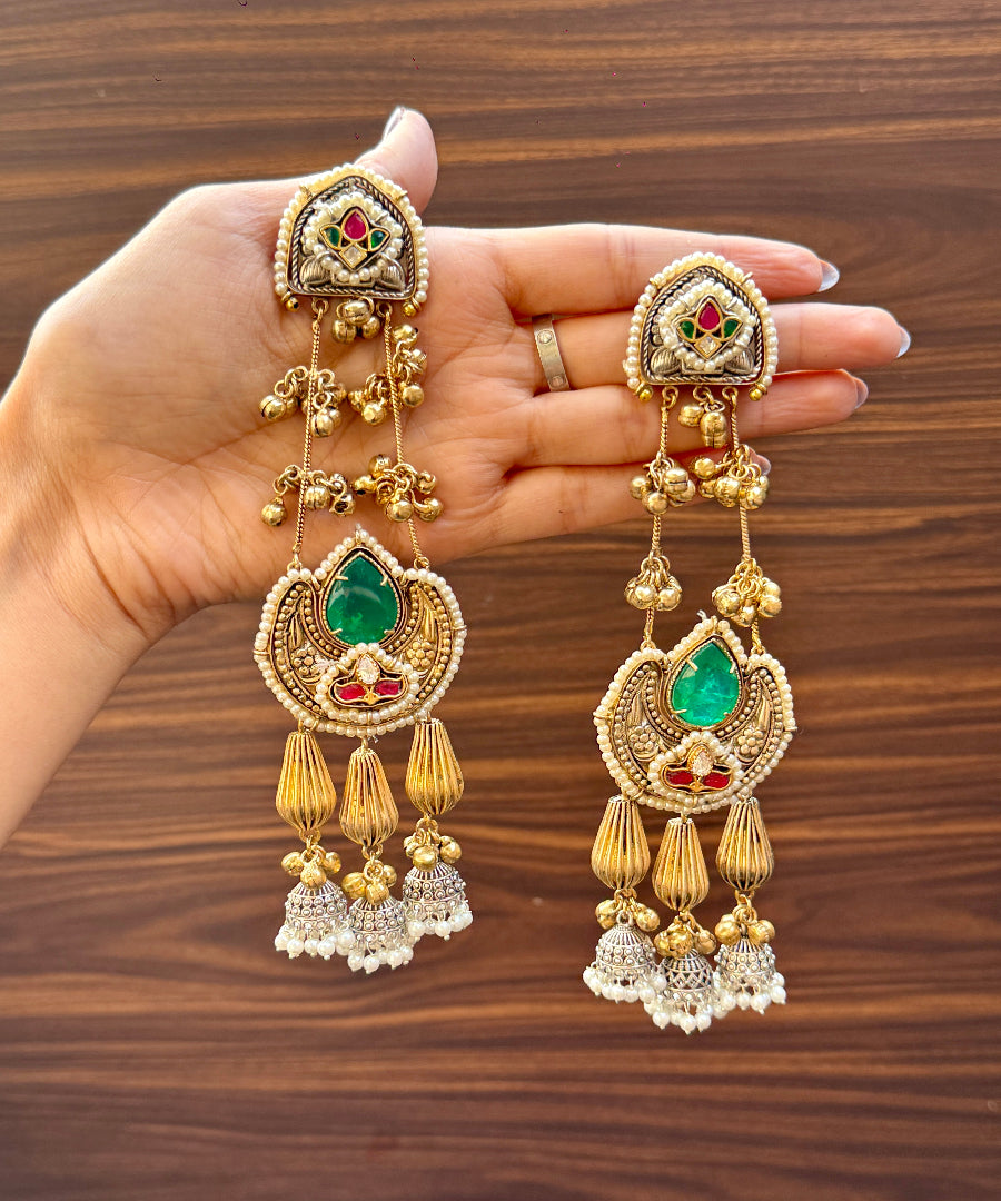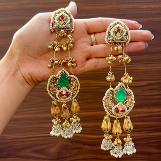 Heavy in impact, light in weight. These statement earrings blend intricate craftsmanship with luxurious detailing — perfect for weddings, festivities or any time you want to shine brighter.