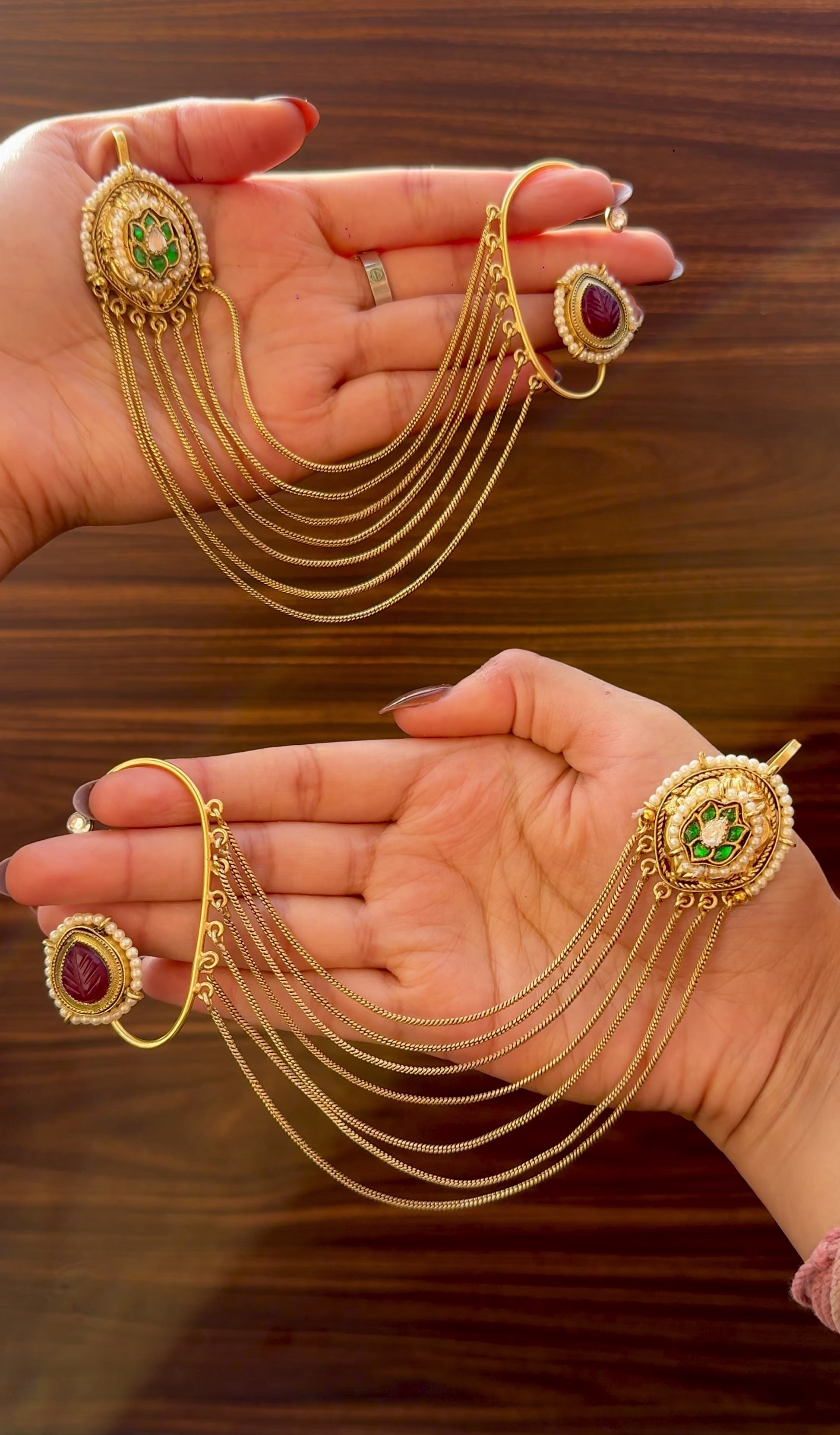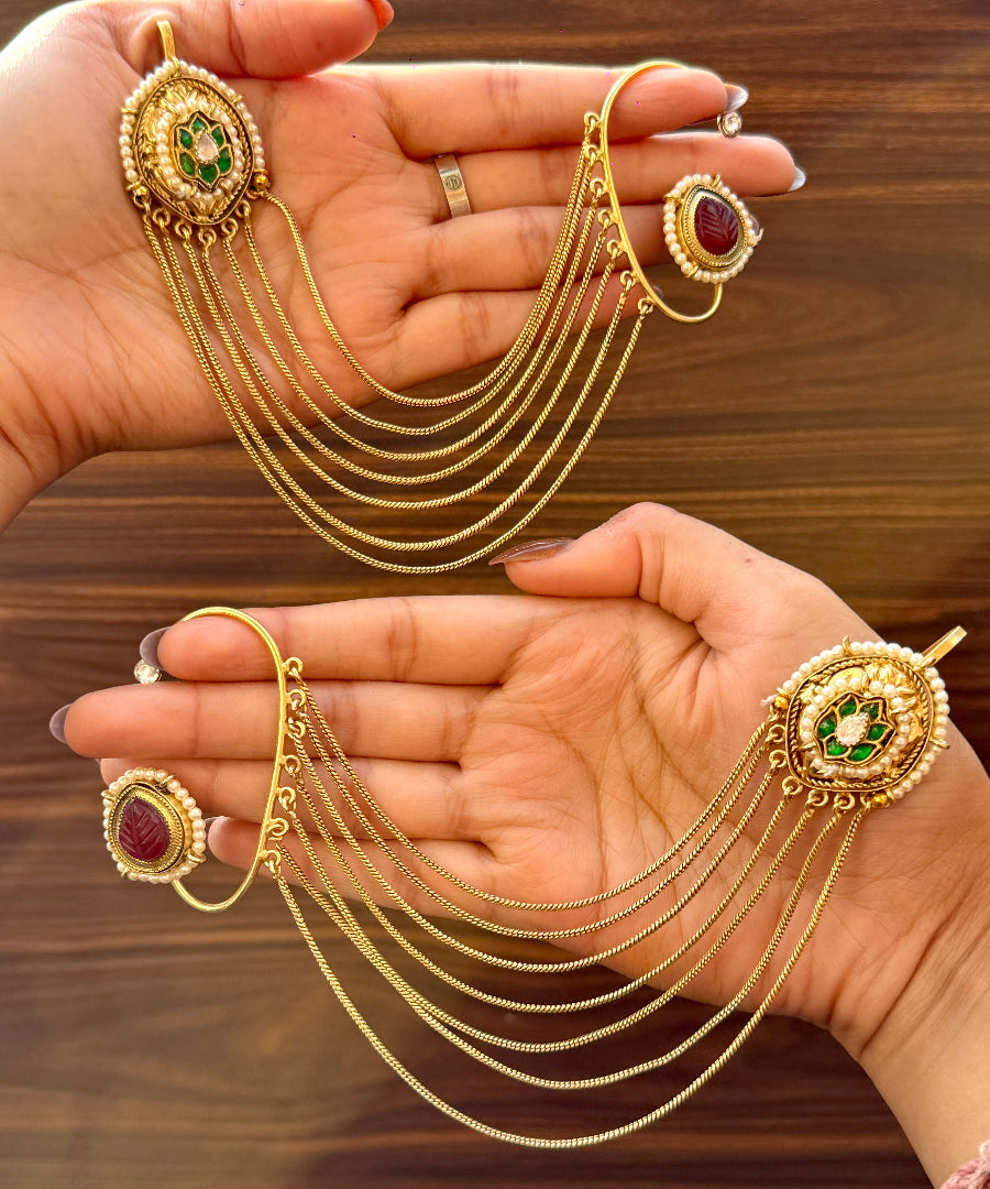 More than jewellery — a heritage. These earrings reflect the classic beauty of Indian traditions, where every chain, every jhumka, every red stone signifies celebration, love and culture.