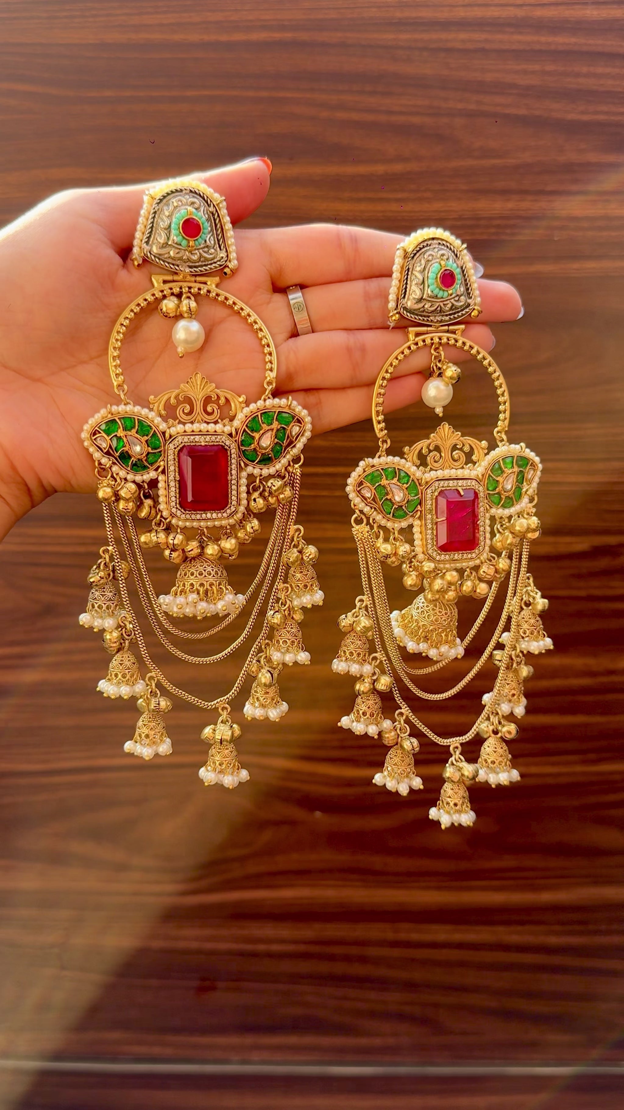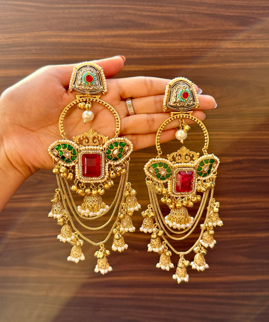 Royal red at its finest. These earrings feature gleaming red stones that exude richness and tradition, making them the perfect choice for weddings, festivals and grand celebrations.