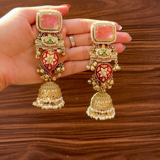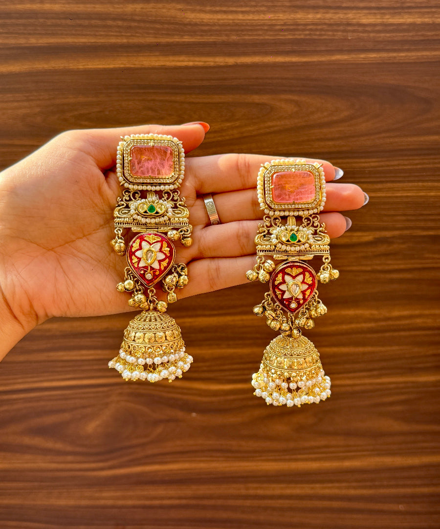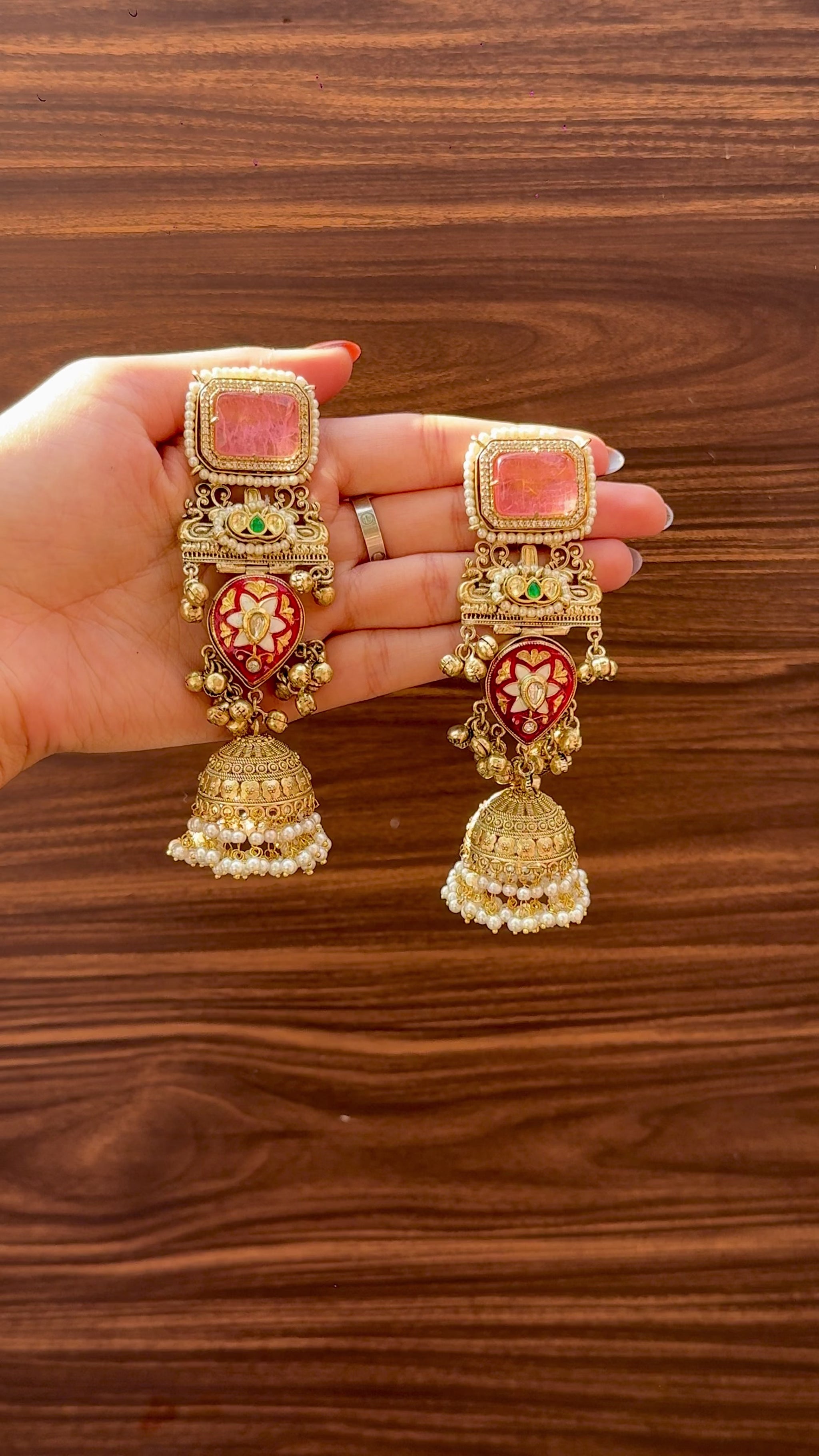 A carnival of colours, crafted to perfection. These earrings feature multiple delicate strings cascading down, each finished with vibrant multi-colour hangings that dance with every move. A perfect match for festive outfits, sangeet nights and mehendi celebrations where vibrance meets elegance.
