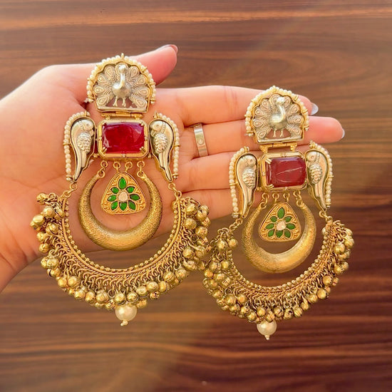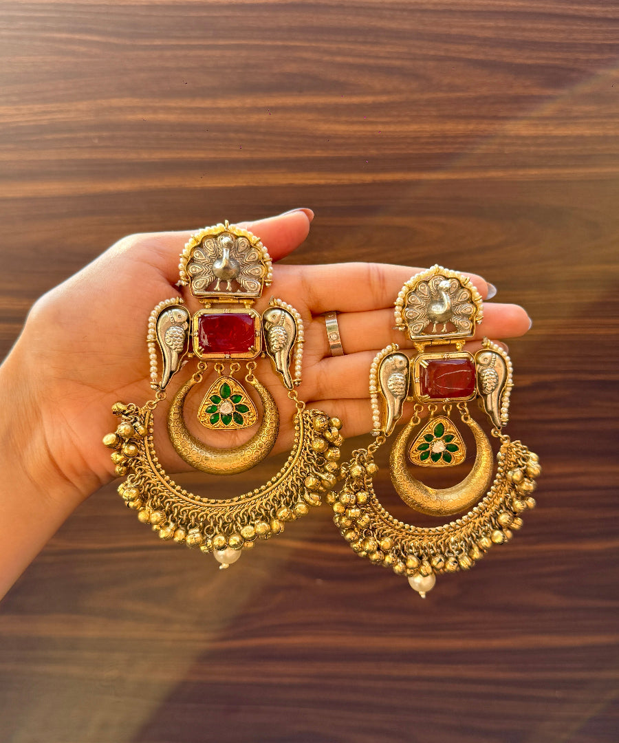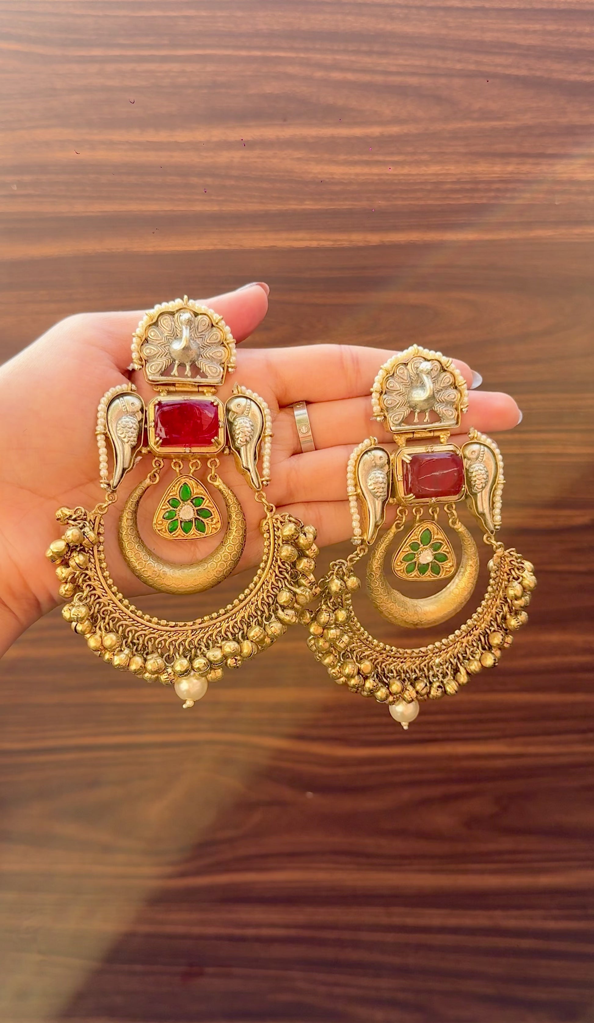 Royal red at its finest. These earrings feature gleaming red stones that exude richness and tradition, making them the perfect choice for weddings, festivals and grand celebrations.
