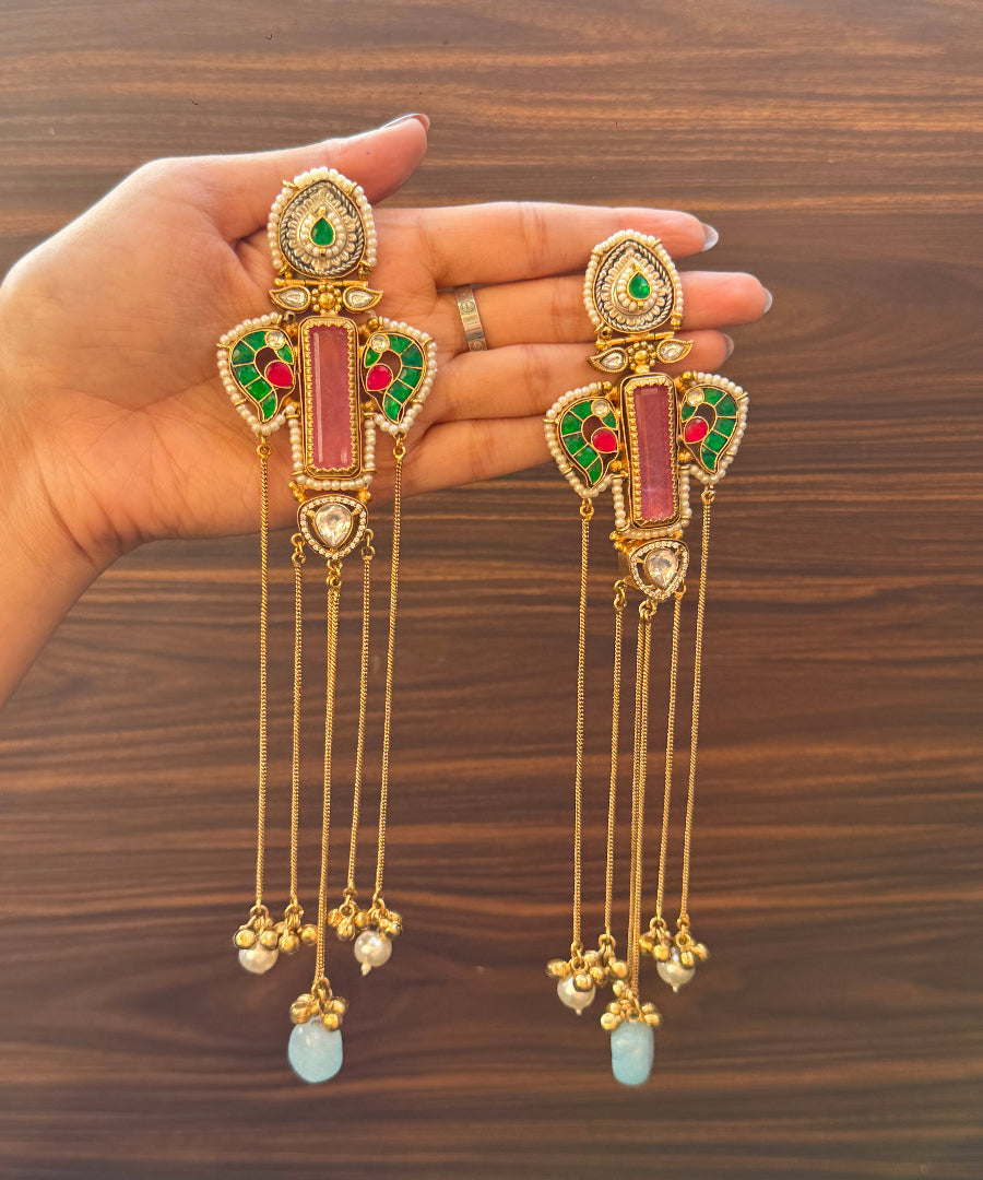 Blending timeless craftsmanship with contemporary flair, these earrings bring grace, charm and sophistication to any outfit. Lightweight yet eye-catching, they’re perfect for weddings, ethnic wear and chic fusion looks.
