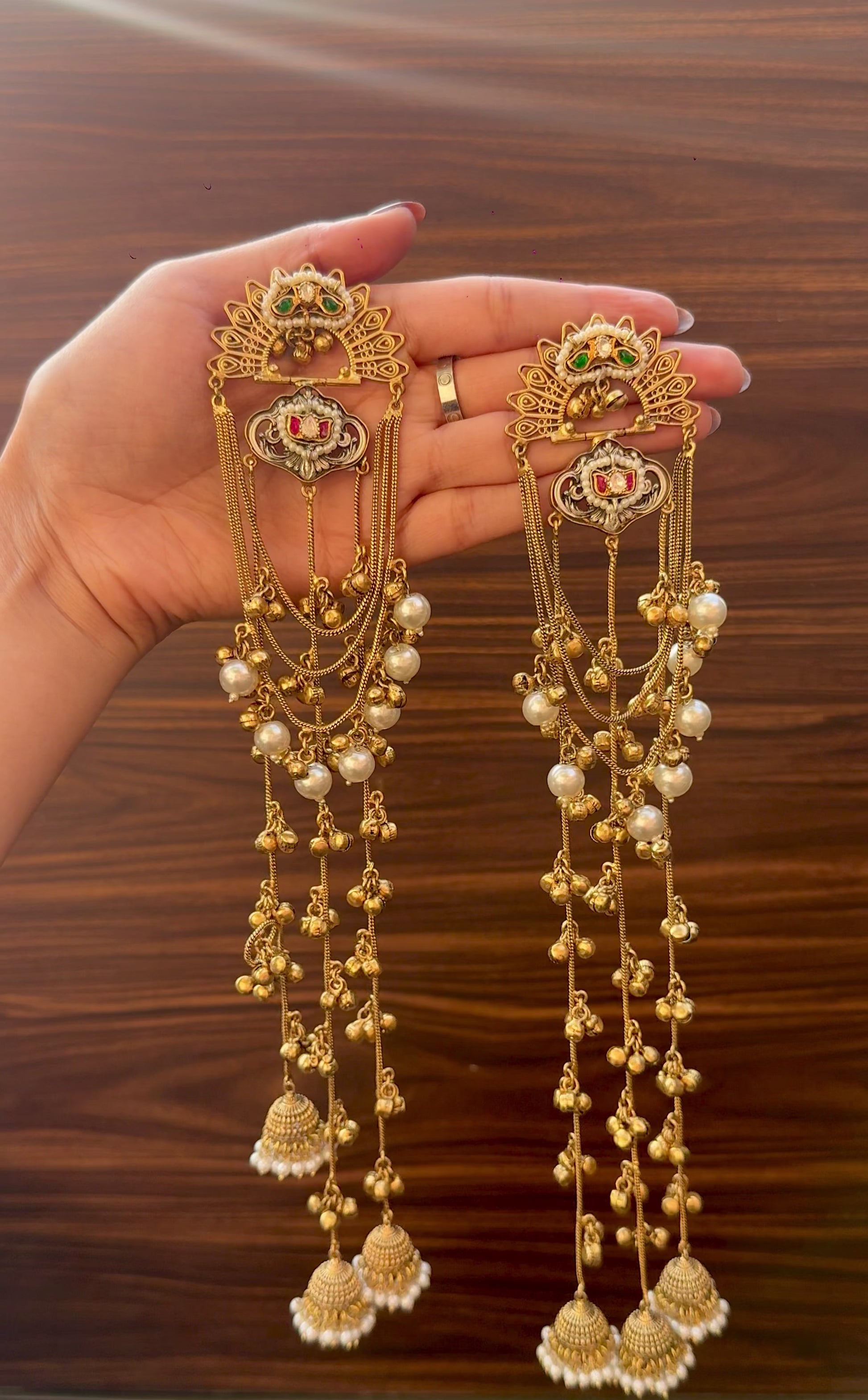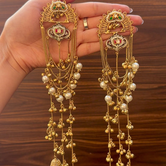 With every step you take, the delicate ghungroos create a soft rhythmic melody. The flowing chain drops add elegance and movement, making these earrings a graceful accessory for ethnic and fusion outfits.