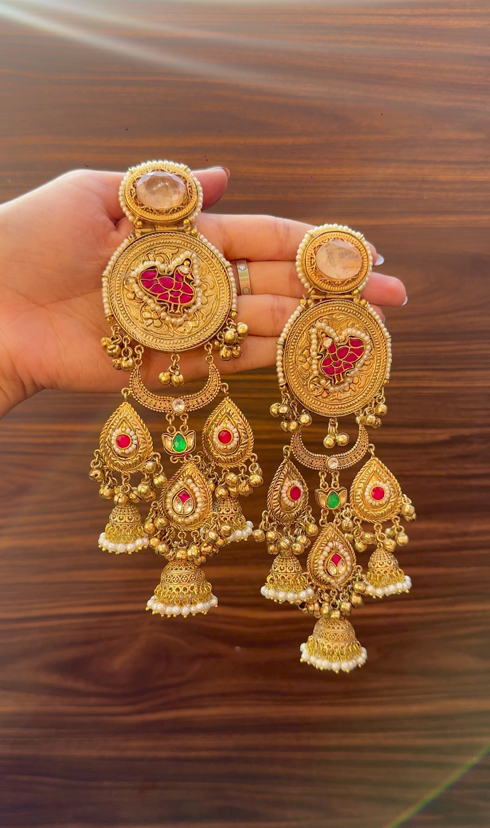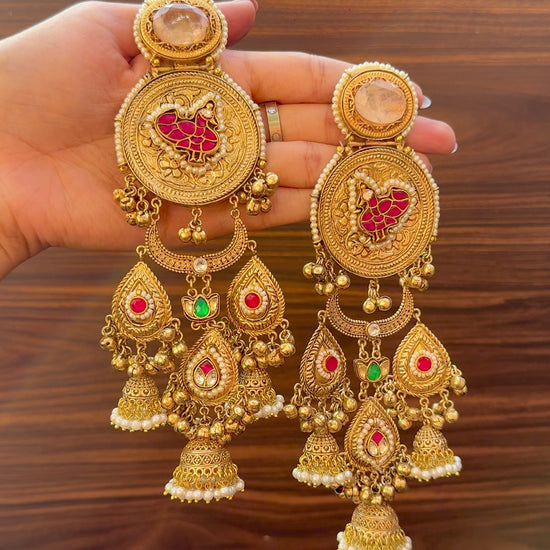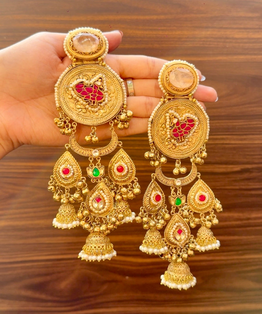 Crafted to perfection, these earrings strike the ideal balance between elegance and glamour. Their sleek silhouette and refined detailing make them a stunning statement accessory for festive celebrations, parties and everyday dressing.