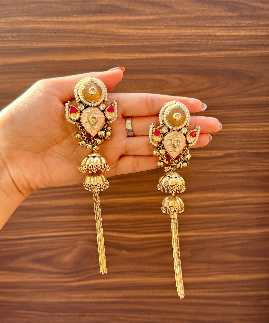 These Minimal Kashmiri Earrings carry the quiet charm of Kashmir in their delicate design. Lightweight, elegant and effortless, they add a soft ethnic touch without overpowering your look — perfect for everyday wear and subtle festive styling.