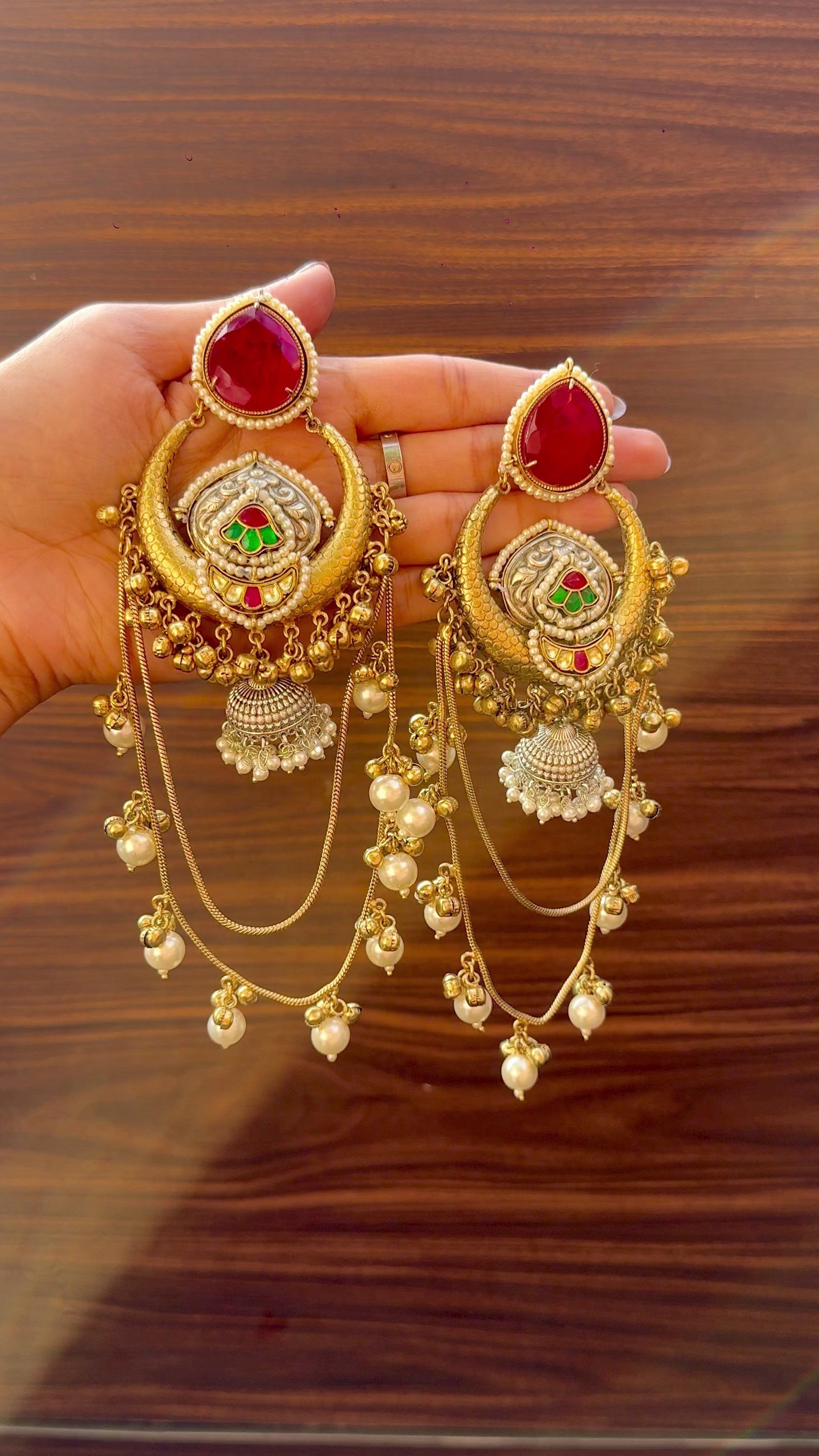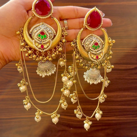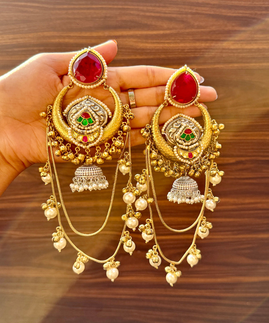 Royal red at its finest. These earrings feature gleaming red stones that exude richness and tradition, making them the perfect choice for weddings, festivals and grand celebrations.