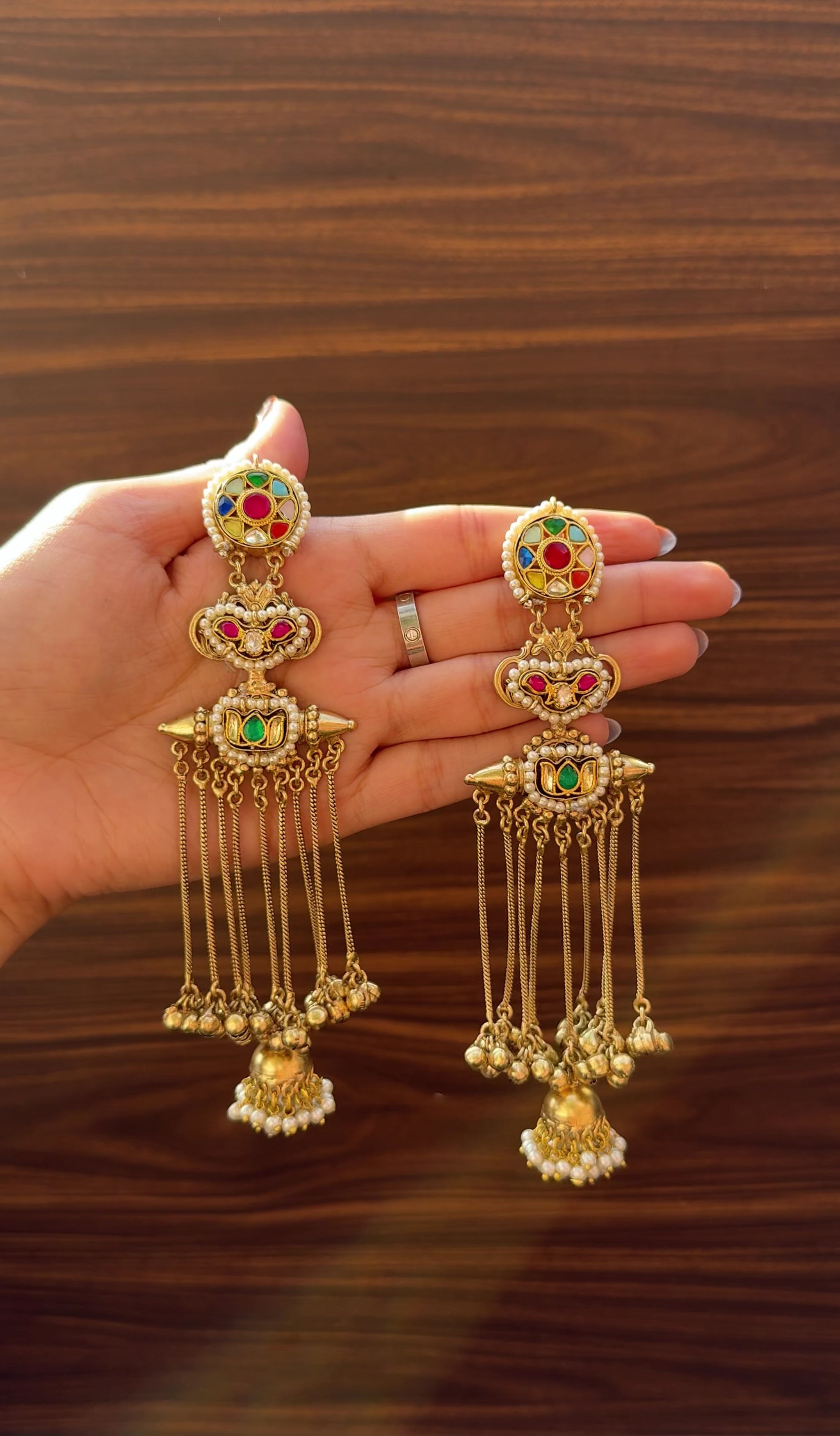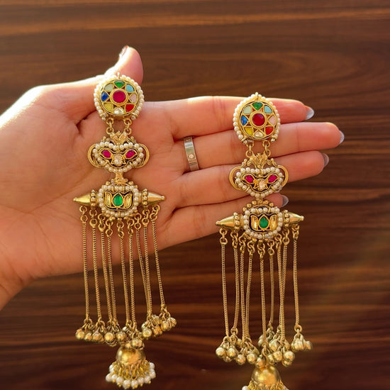 Crafted with a luminous multi-colour stone, these earrings bring together richness, sparkle and celebration in a single design. Perfect for weddings, festivities and occasions where you want to stand out effortlessly