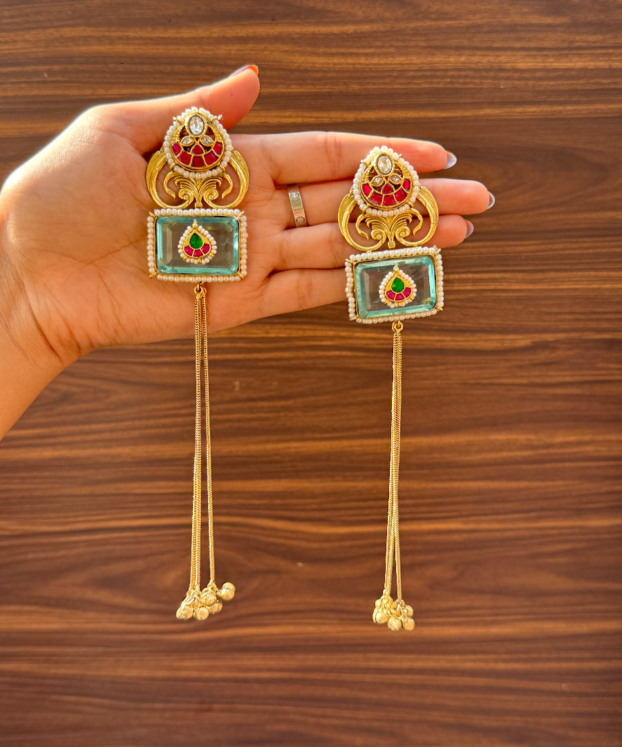 These Minimal Kashmiri Earrings carry the quiet charm of Kashmir in their delicate design. Lightweight, elegant and effortless, they add a soft ethnic touch without overpowering your look — perfect for everyday wear and subtle festive styling.