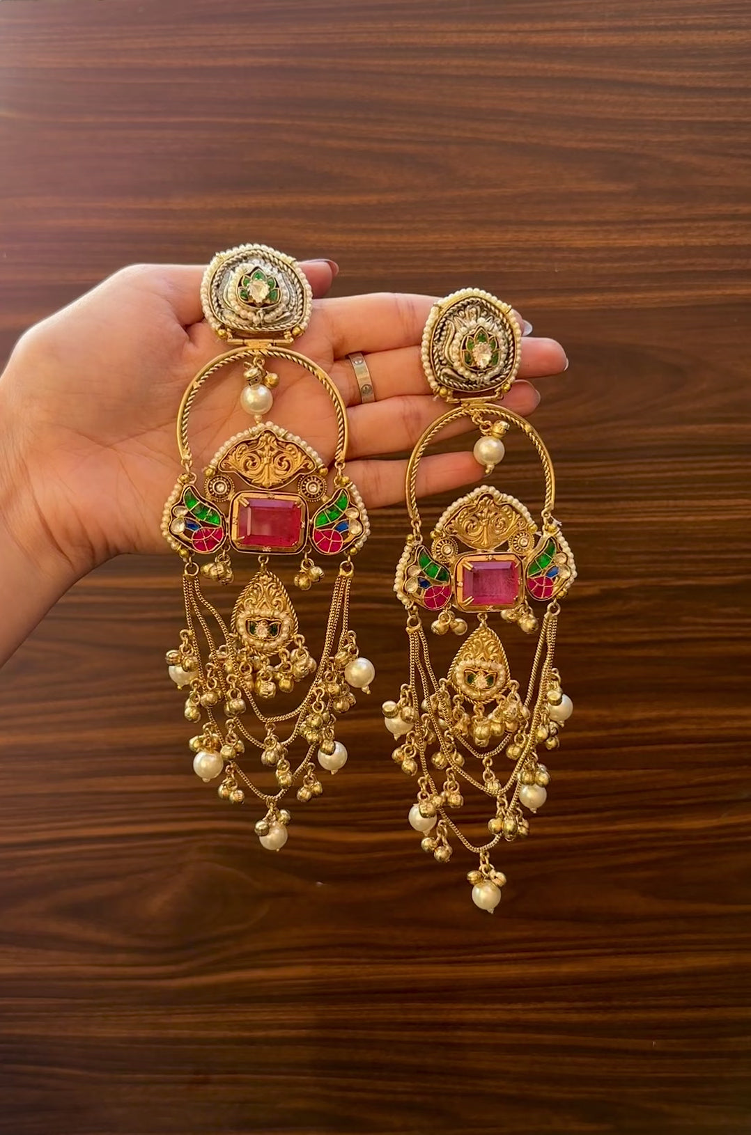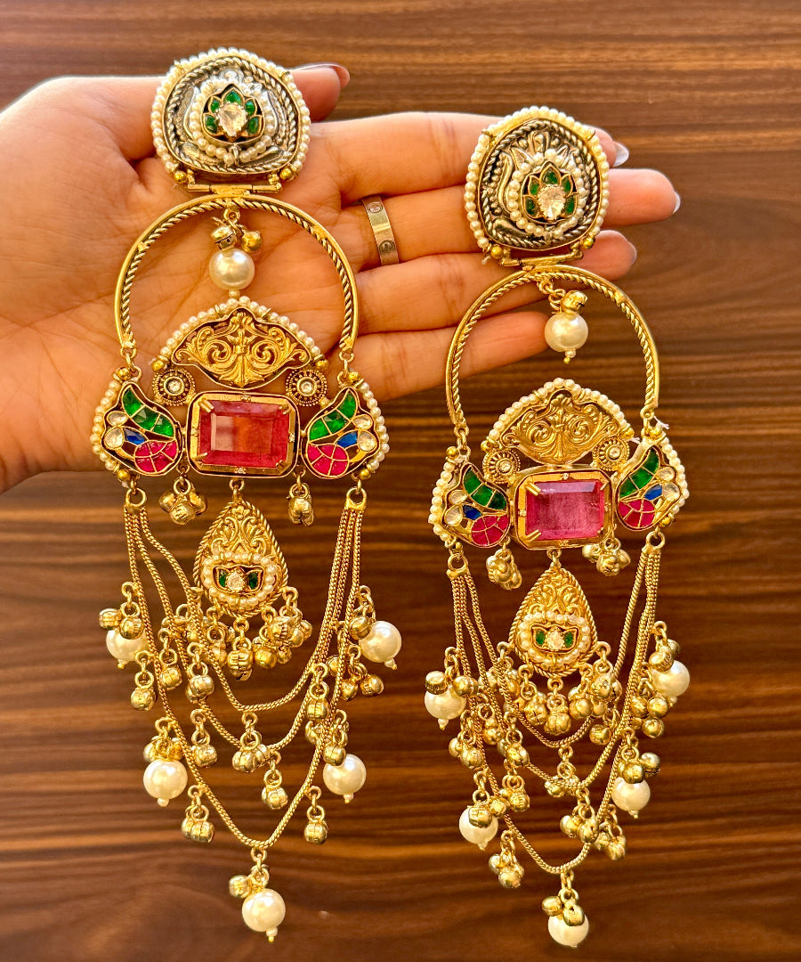 Inspired by timeless Indian craftsmanship, these earrings reflect heritage, beauty and culture in every detail. They pair seamlessly with sarees, lehengas and ethnic fits for a rich and graceful finish.