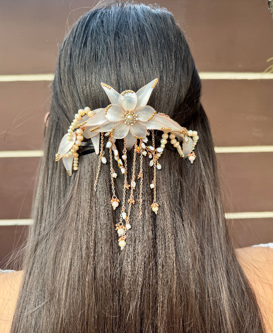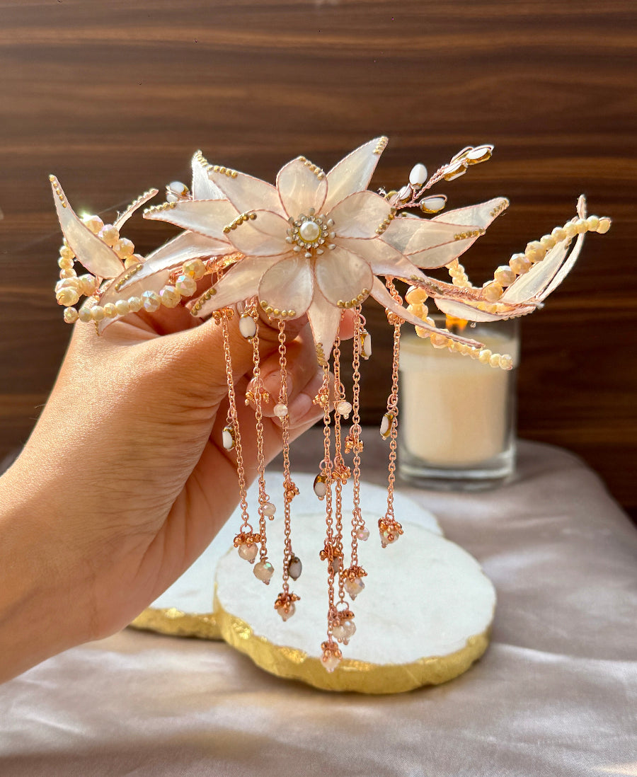 Every flower is placed to frame your hairstyle with timeless elegance.