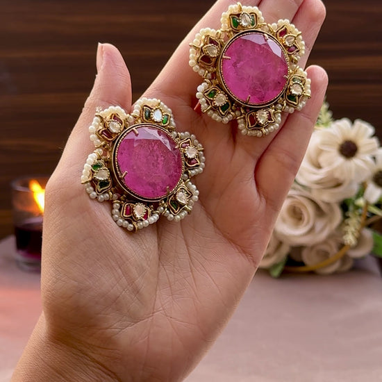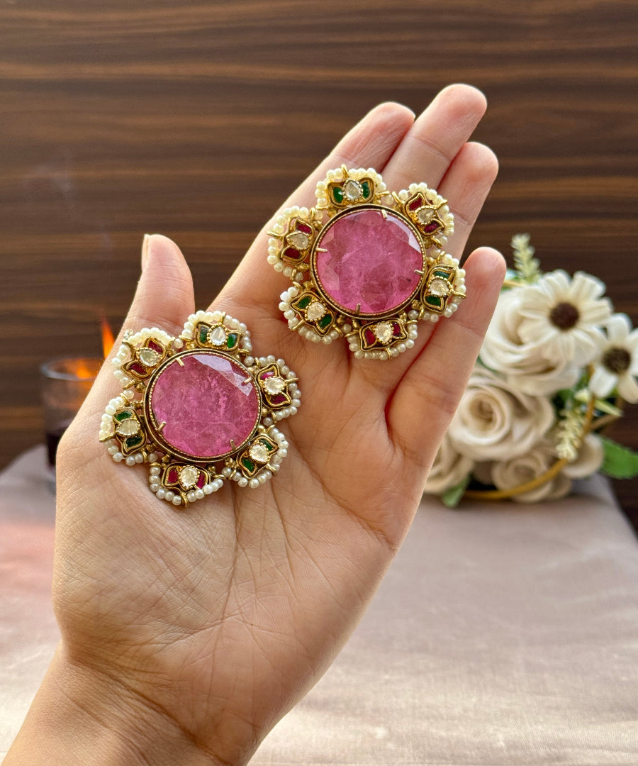 A divine whisper in metal, 'Ishvaya' Studs radiate calm and celestial beauty. Crafted with intricate detail, they reflect the balance of serenity and strength — perfect for the woman who embodies grace in every glance.