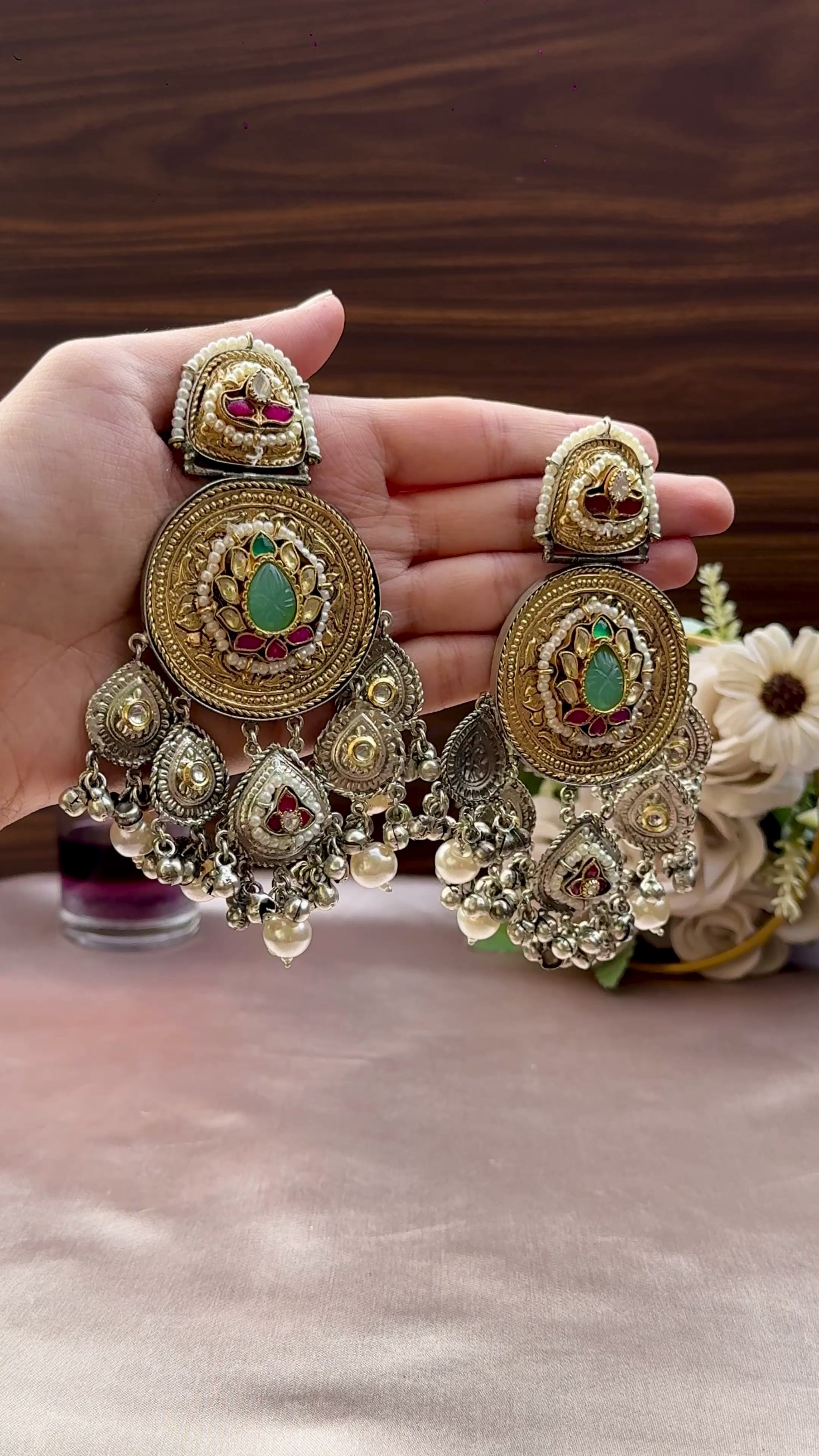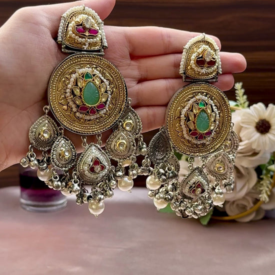 A melody of devotion and beauty, 'Meera'Earings radiate divine charm. Their timeless allure complements every mood — from festive glow to daily grace.
