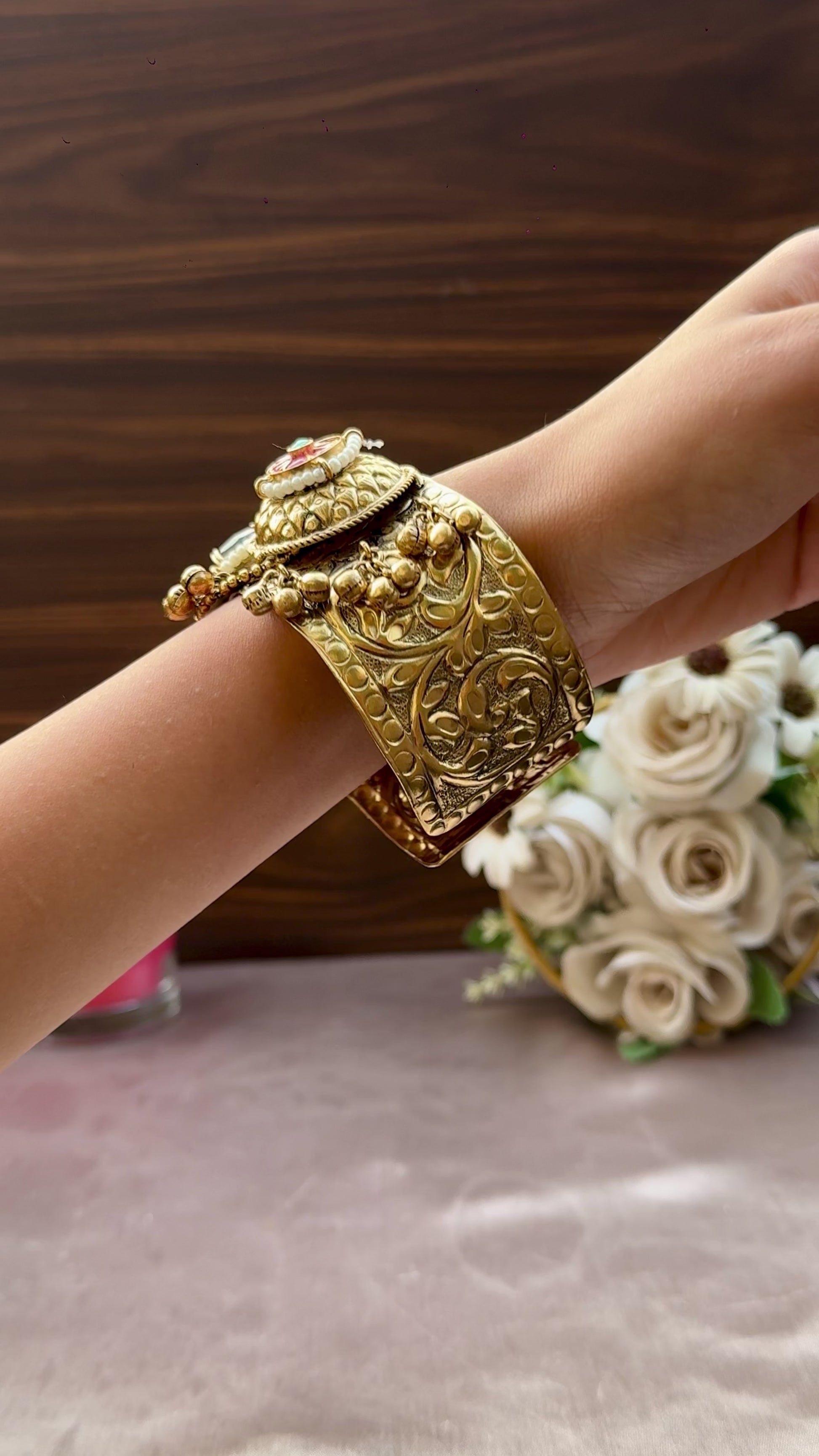 Inspired by the bloom of crimson flowers, this Bracelet radiates feminine grace and timeless charm. Its intricate detailing mirrors petals kissed by sunlight — perfect for those who love to wear elegance with a hint of fire.