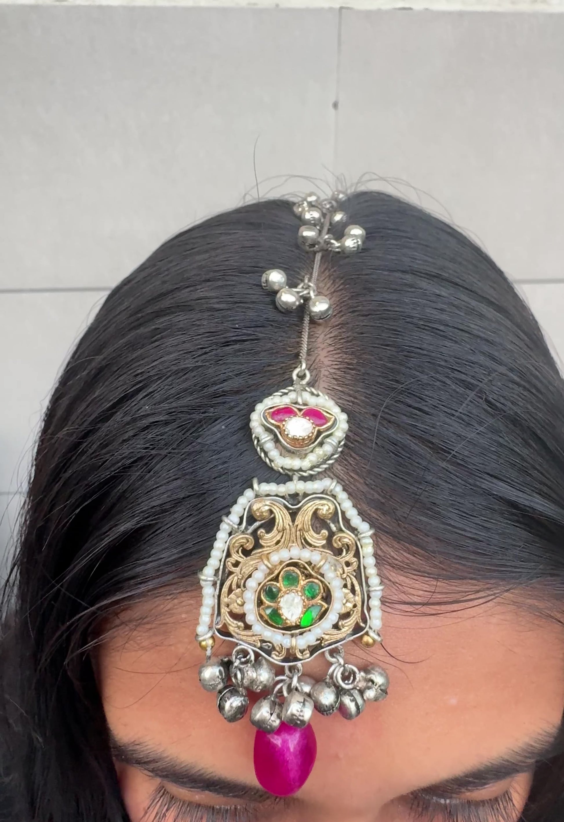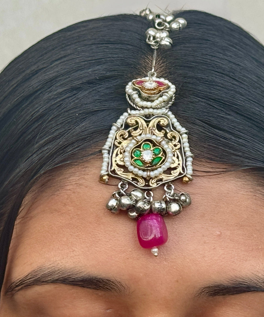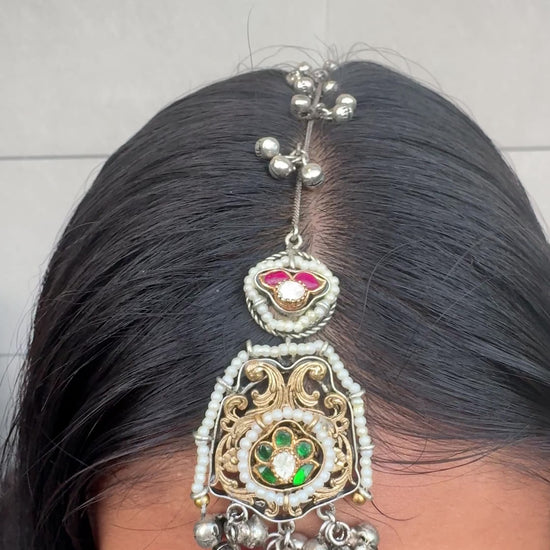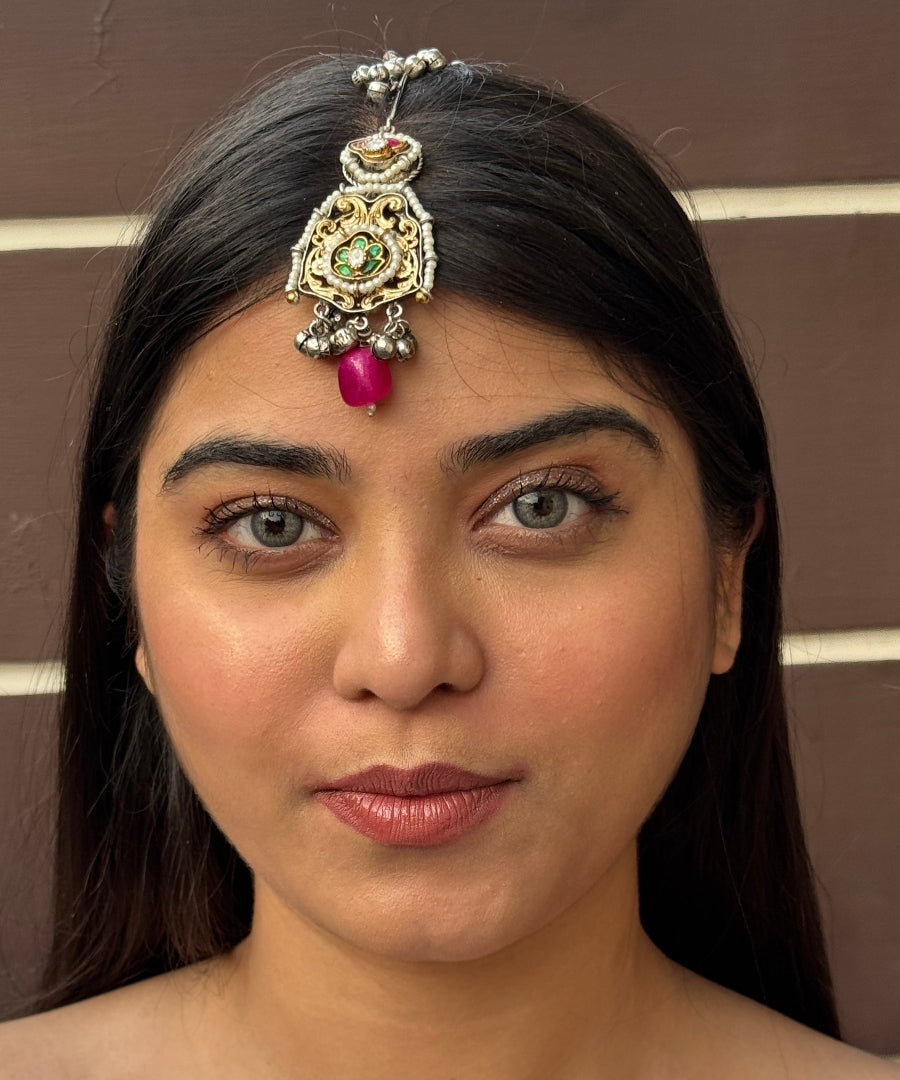 A crown of love, crafted to make every moment royal. The ‘Mohabbat-e-Taj’ Maang Tikka is designed with intricate detailing that reflects timeless charm and elegance. Its graceful fall and sparkling finish make it the perfect piece to complete your bridal or festive look.
