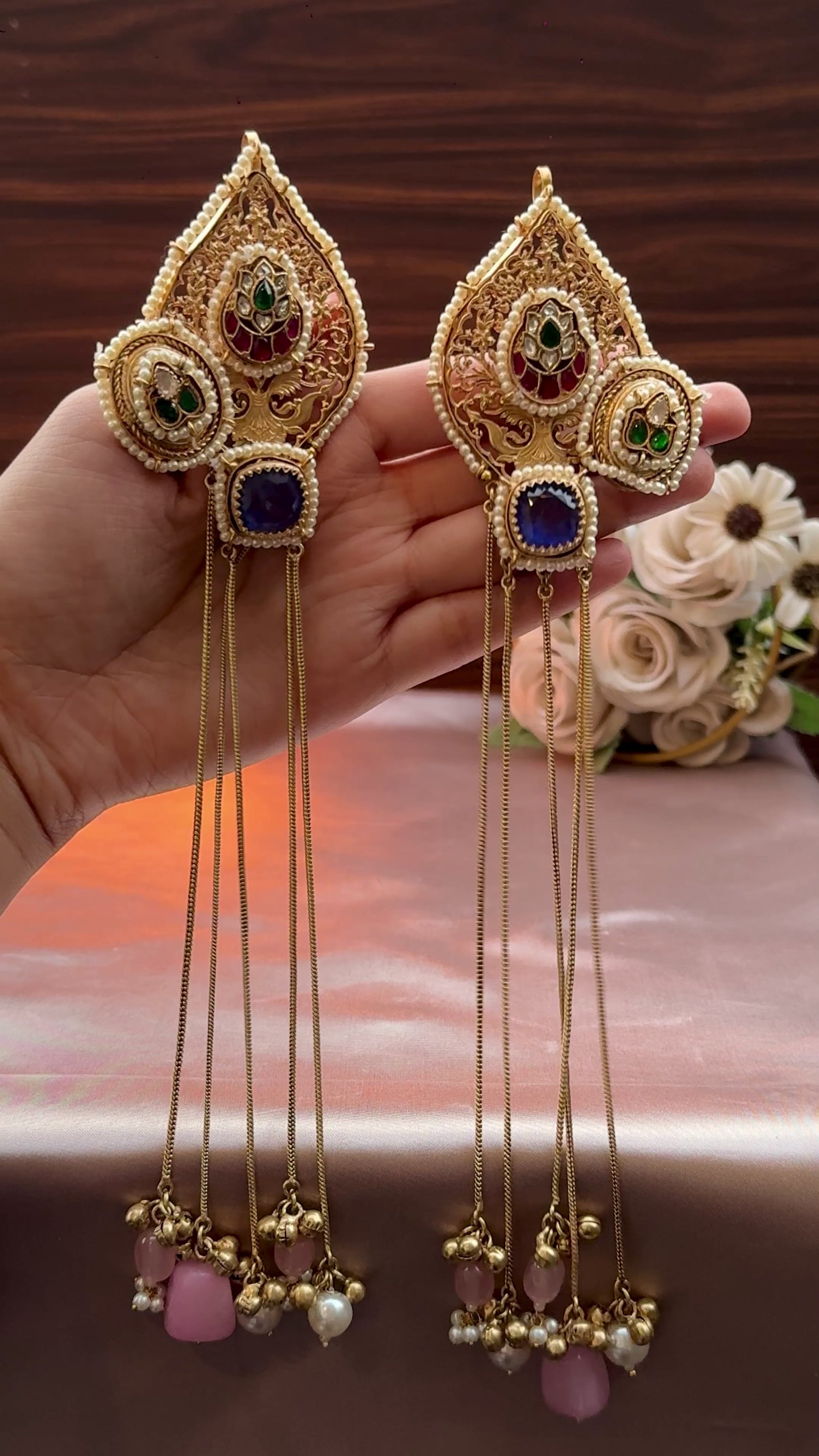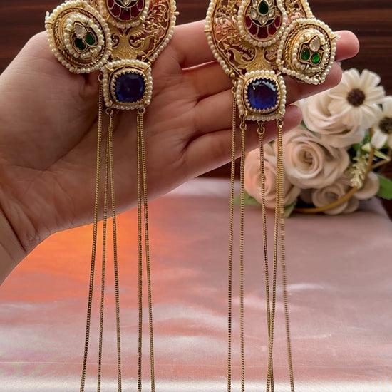 Royal by heart, 'Rajnandini' Earings embody heritage and grandeur. Their majestic design carries the essence of old-world charm, made for the queen who rules with grace and gentleness.