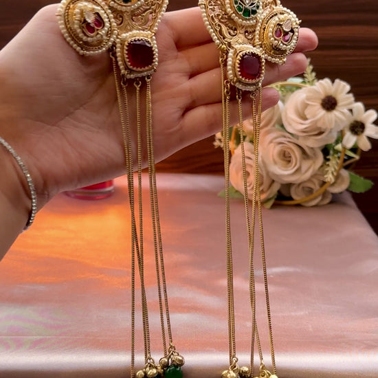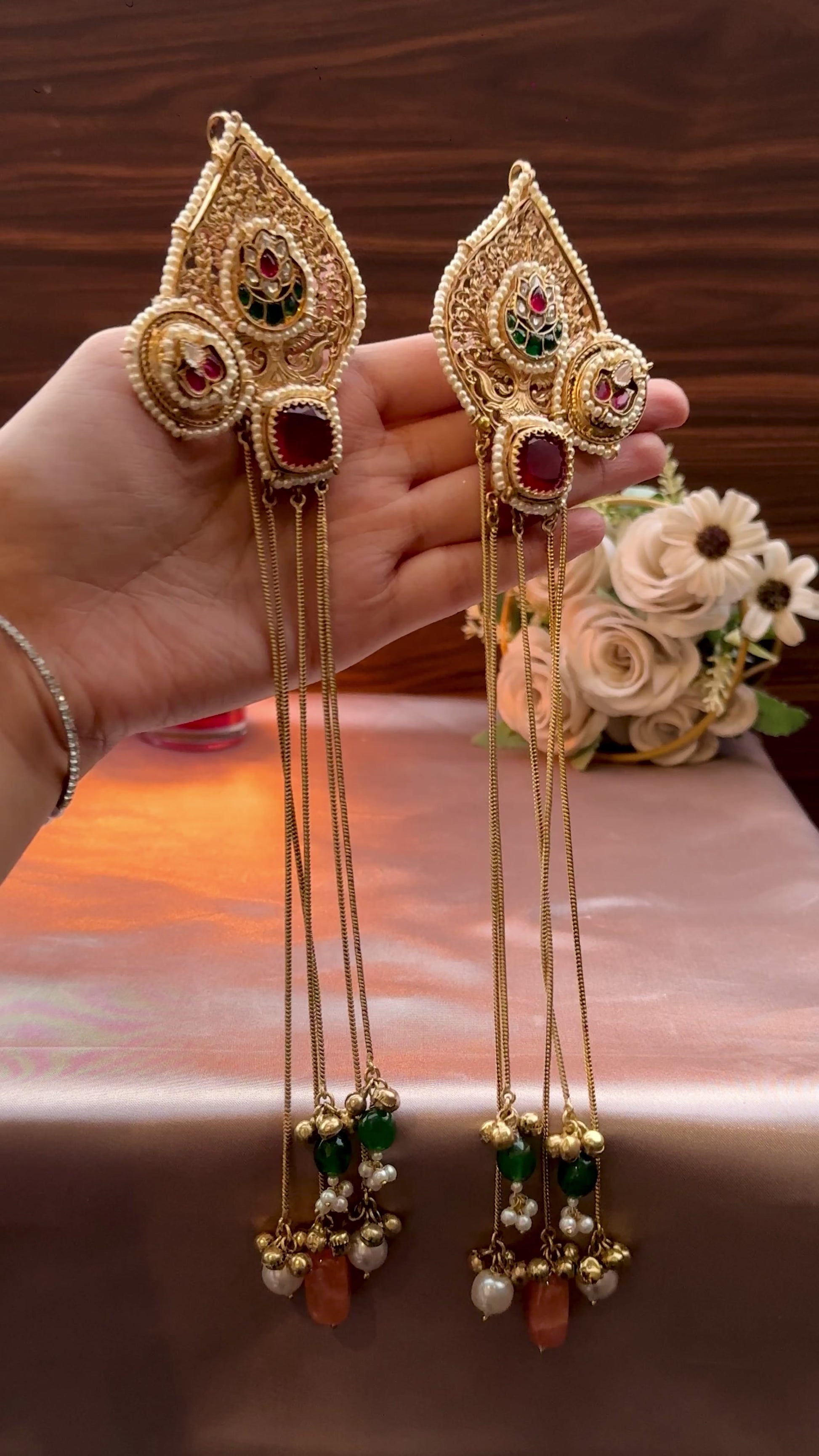 Royal by heart, 'Rajnandini' Earings embody heritage and grandeur. Their majestic design carries the essence of old-world charm, made for the queen who rules with grace and gentleness.