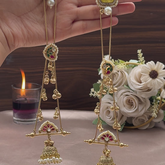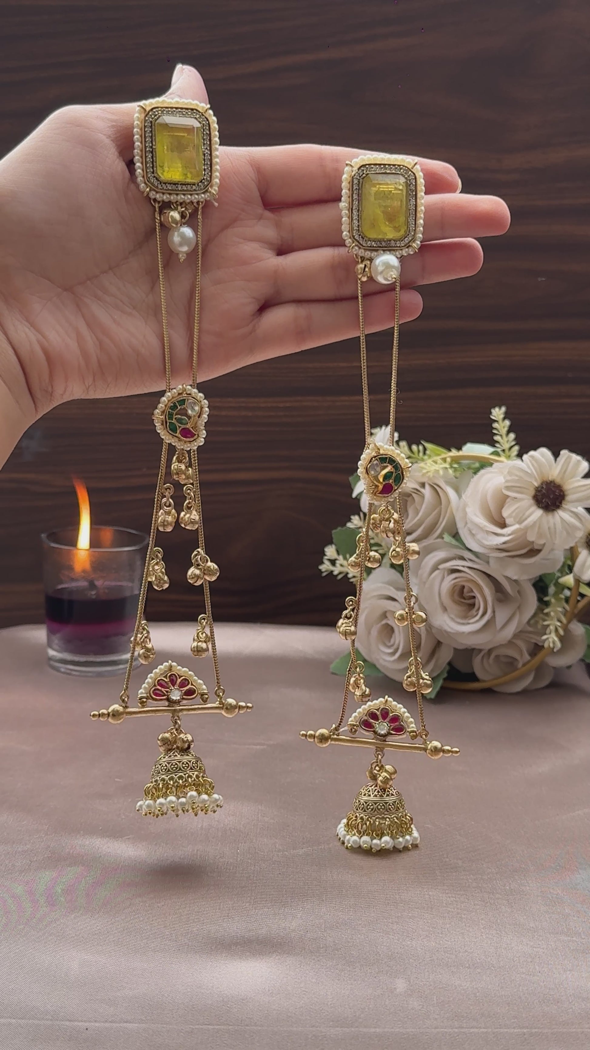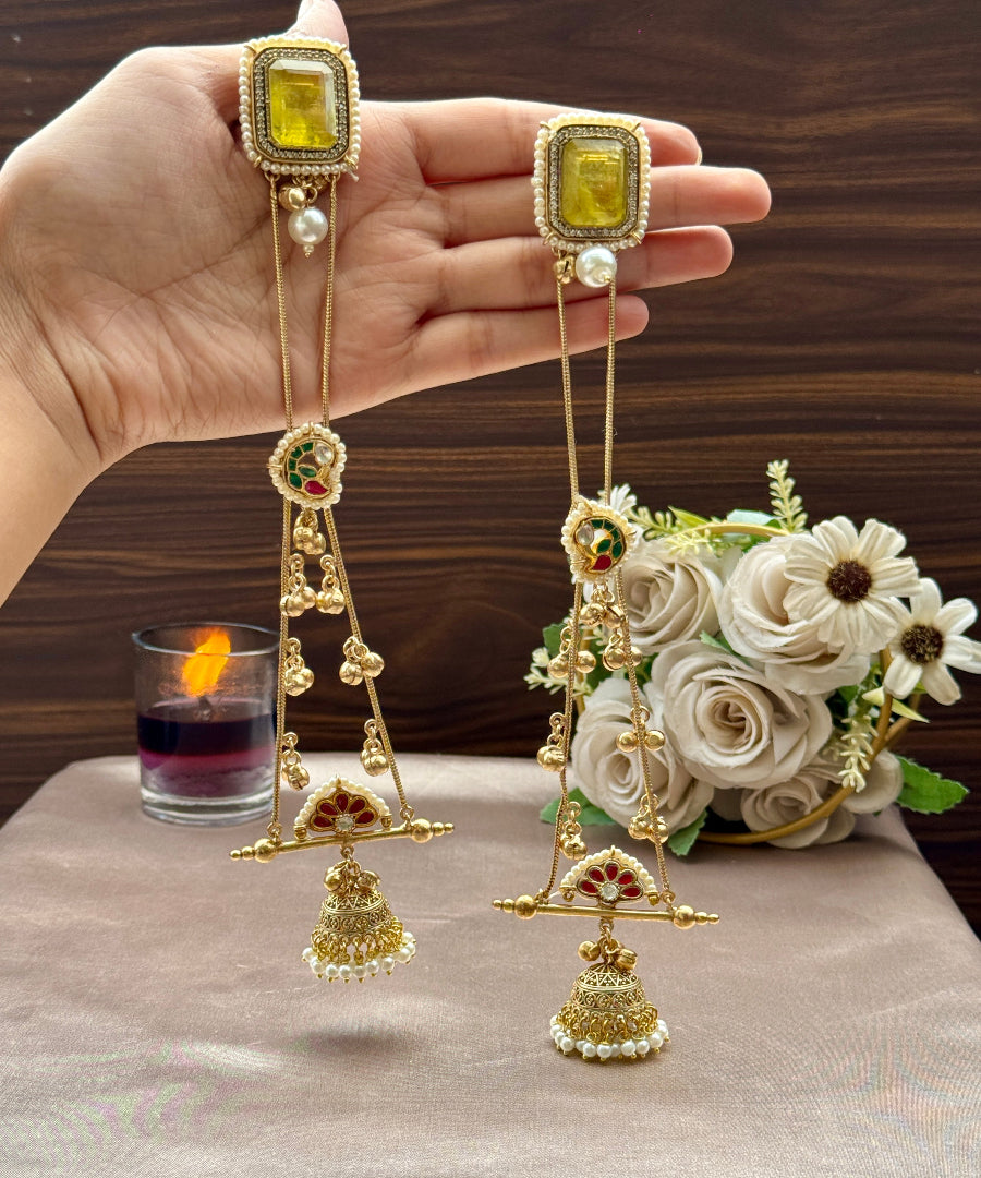 Grace wrapped in golden hues — 'Ritika' Earings shimmer with timeless charm. Their delicate craftsmanship adds a soft sparkle, perfect for festive nights and heartfelt smiles.