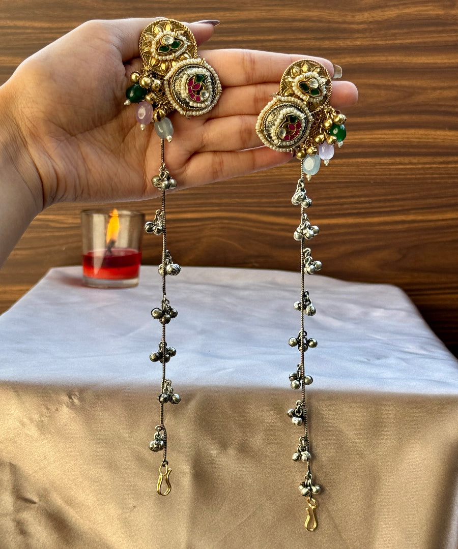 The ‘Saaz-e-Khamoshi’ Earrings embody the silent melody of elegance — soft, graceful, and timeless.